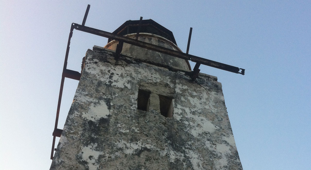 The lighthouse was erected by the German colonists in 1893. By the beginning of the 21st century it had decayed and vandalized into an alarming state. The walls were secured and the roof repaired, to conserve the building for future generations.