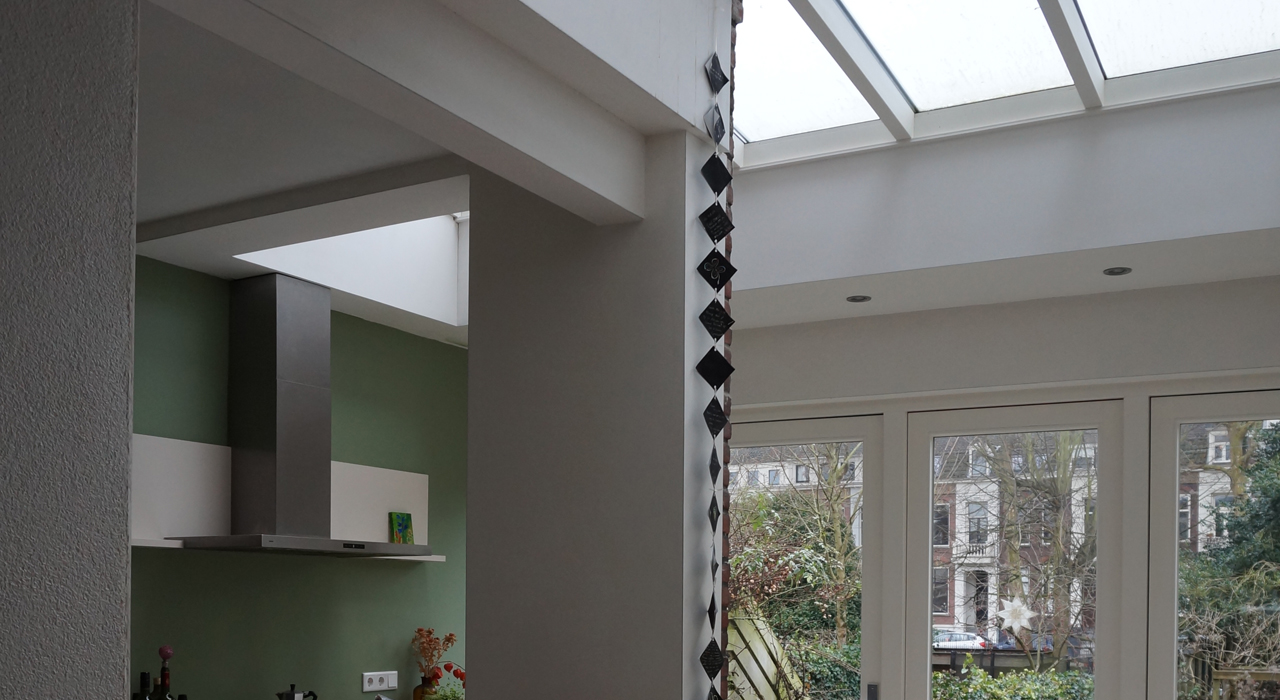 In order to join the livingroom with the kitchen FC Donderstraat 19A is extended into the garden.