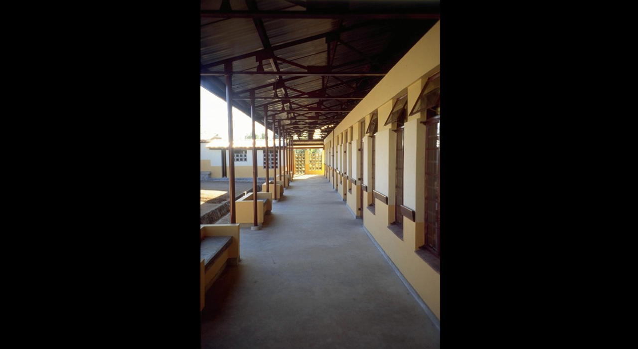 By the early 1990s, the existing health centre at Mtinko had become far too small to respond to the needs of the fast growing population. Therefore a masterplan was developed, that provided for a staged 20-years perspective growth into a 150-bed hospital. The existing buildings were rehabilitated and integrated into a fairly conventional pavilion-type hospital with covered connecting walkways. The out-patient services and clinics are redeveloped under a huge flying roof that covers buildings, reception area, waiting areas and circulation in one gesture.